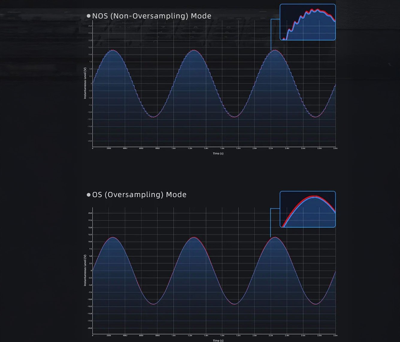 Salah satu fitur yang paling asik adalah kamu bisa milih mau dengerin suara kayak gimana lewat dua mode operasi. Kalau kamu suka suara yang asli, apa adanya, dan terasa sangat organik sesuai rekaman aslinya, kamu bisa pilih mode NOS (Non-Oversampling). Tapi kalau lagi pengen suara yang lebih teknis, super jernih, dan detailnya lebih tajam, tinggal pindah ke mode OS (Oversampling) yang bakal meningkatkan sampling rate secara global ke 384kHz.